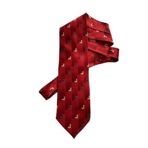 Alexander Julian Silk Tie Handmade Woven Tipped Bar Tac Tie Loop Red Geo 60x3.75
