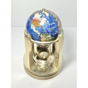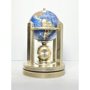Alexander Kalifano 3-Timepieces Thermometer Rotating Gemstone Brass Globe 8.75”