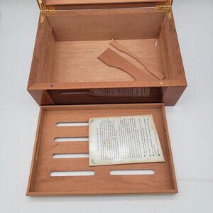 Discover the sophistication of the Alexander Kalifano Wooden Humidor Box, a perfect storage solution for your cherished cigars. Crafted with an eye for detail, this humidor boasts a distinctive leaf design that exudes a sense of natural elegance. It's an ideal choice for collectors and aficionados alike, seeking to protect their cigars with a touch of class. The humidor's sturdy construction ensures your cigars are kept in pristine condition, while the sleek design adds a refined touch to any collection. Whether it's a thoughtful addition to your own space or a splendid gift for a friend, this Alexander Kalifano humidor is a testament to style and function.