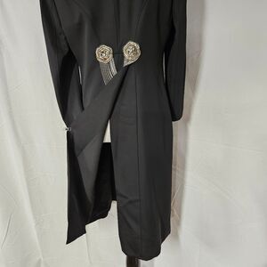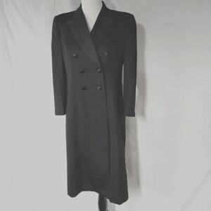 Alexander McQueen 2007 Vintage Black Wool Blend Tuxedo Style Long Coat Dress