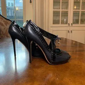 Alexander McQueen black peep toe pump shoes in a size 38.5