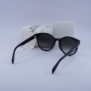 Alexander McQueen AM0349SA 001 Sunglasses Black Round Frame, Grey Lenses