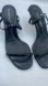 The Alexander McQueen Armadillo Black leather naked sandal featuring a round toe silhouette and a metal bar detailed with the Alexander McQueen logo. Finished with a silver and gold-lacquered Armadillo sculpted heel. These sandals were used as a store model. May show some minimal signs of wear. No sole wear. Review all photos and video.