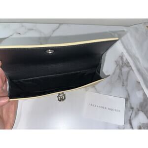 This Alexander McQueen beige leather clutch combines timeless elegance with an edgy twist. The iconic skull detail and sleek design make it a standout accessory for any evening event or special occasion. The soft beige leather adds a touch of sophistication, while the compact size ensures it's perfect for carrying your essentials in style.