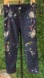 Stylish pants with a unique paint splatter design. Features a mix of colors on a dark base.