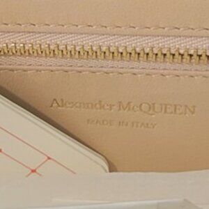 Alexander McQueen signature four-ring knuckle clasp on a wallet with a chain, crafted from fine black Italian leather, showcasing a stunning gold tone removable chain strap, one interior zipper pocket on the inside. Snap flap opens to six credit card slots, one slot for dollar bills. Branded box and dust bag included.