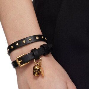 Alexander McQueen Black Hammered Studs Double-Wrap Bracelet
