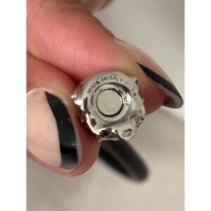 This Alexander McQueen bracelet features a unique skull design on a durable rubber band with a striking silver-tone clasp. Suitable for any professional setting, this accessory adds a touch of sophistication and edge to any ensemble. The bracelet comes with a branded pouch for secure storage.