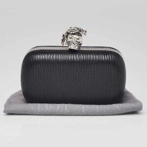 Alexander McQueen Black Textured Leather Skull Box Clutch Bag