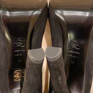 Alexander McQueen Black Velour Peep Toe Pumps 41 NIB Gold Skull Hardware
