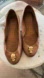 Leather Camel ballet flats with gold skull embellishments by Alexander McQueen Size EU 40 / US 9.5. Gently worn, great condition with plenty of life left.