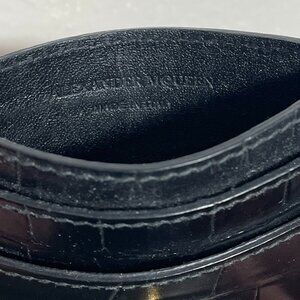 - Crocodile skin embossing, black leather with gold hardware
