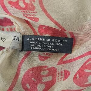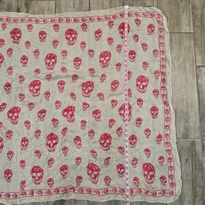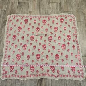 Alexander McQueen Classic Skull Foulard Womens One Size Ivory Pink Silk Scarf
