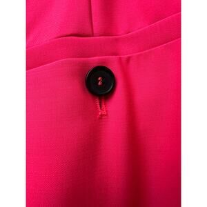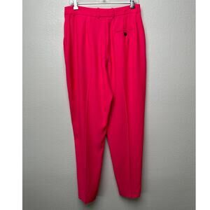 Tailored women’s trousers in a vivid coral-pink. Made in Italy with front pleats for shape, a tapered leg, belt loops, zip fly with hook/inner button, and side slip pockets with back welt pockets. Sharp enough for suiting and events, and easy to pair with blouses or a matching blazer. Professional dry clean only per care tag.