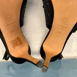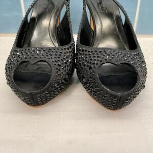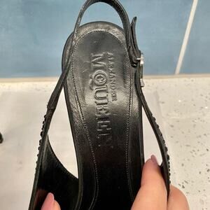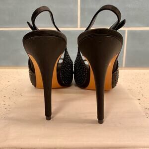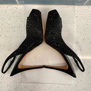 Alexander McQueen Crystal Embellished Slingback Sandals Heels Black 40 Showgirl