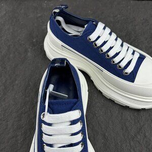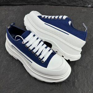 Alexander McQueen Dark Blue Canvas Platform Sneakers