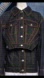 Elegant dark blue denim jacket with structured design. Features button closure and stylish stitching.