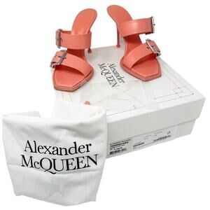 Alexander McQueen Double Buckle Slide Mule Sandals Apricot size 38.5 US8.5