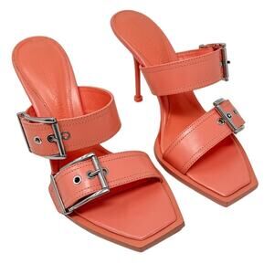 RAD Alexander McQueen double buckle slide mule high heel sandals! Boldest, baddest apricot orange color. Everything from McQueen is cooler than I'll ever be.