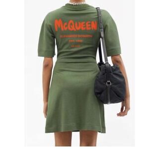 Alexander McQueen Dress Short Sleeve Graffiti Logo T-Shirt Green Size 36 XS