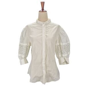 Alexander McQueen Eyelet Puff Sleeve Poplin Blouse - Italian Size 46