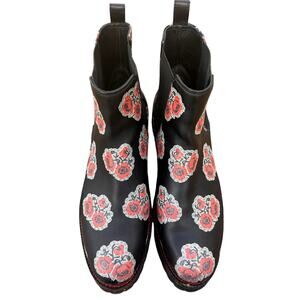 These chic ankle boots from Alexander McQueen are sure to be showstoppers. Classic black leather is paired with thick lug rubber soles, perfectly juxtaposed with a printed flower motif and silver studded heels. These boots add a bit of edge to any outfit!