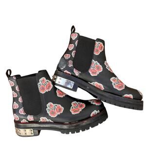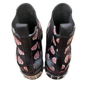 Alexander McQueen | Floral Print Leather Chelsea Booties in Black Size 38