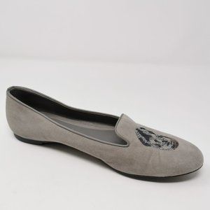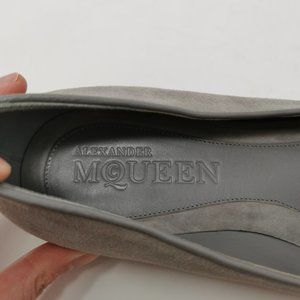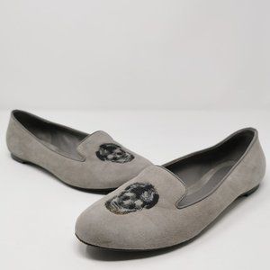 Alexander McQueen Grey Suede Flats Loafers With Sequin Skulls