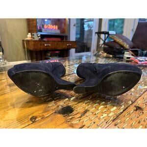 These are the legendary heelless wedges that were part of Sarah Burton's Fall 2011 collection for Alexander McQueen in a lush blueberry suede.