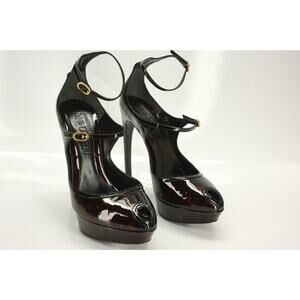 Alexander McQueen Turtle Patent Leather platform open peep toe mary jand ankle wrap Sandals