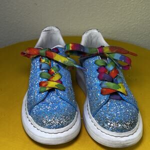 Alexander McQueen Kids Sneaker Blue Glitter Shoe 27 D