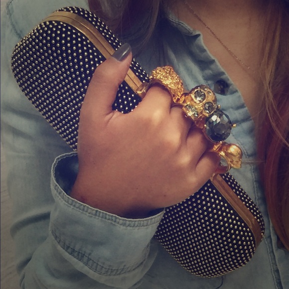 Alexander McQueen Knuckle Clasp Studded Box Clutch