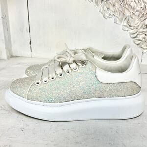 Alexander McQueen Low Top Oversized Sneaker Silver Glitter Women's Size 40 E