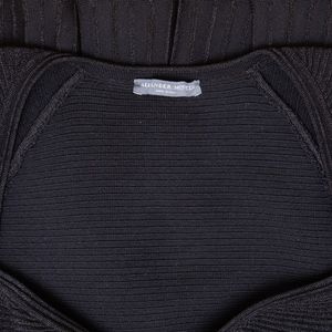 Sultry bodycon wool-blend dress with variegated rib-knit panels