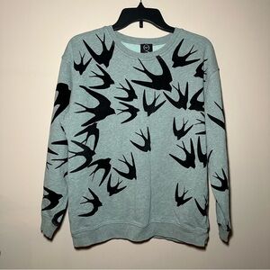 Alexander McQueen Mint Melange Mixed Media Novelty Birds Pullover Sweatshirt S