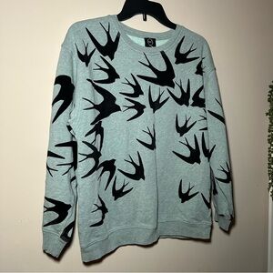 Alexander McQueen Mint Melange Mixed Media Novelty Birds Pullover Sweatshirt S