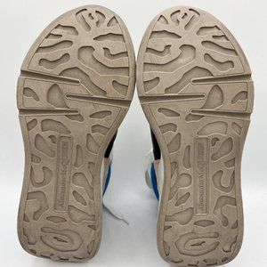 These running sneakers feature a multicolored, mixed-media upper with a bouncy platform sole.