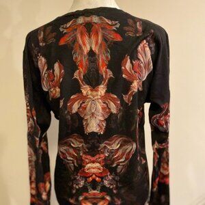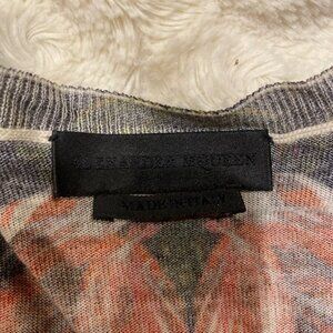 Alexander McQueen NWOT Red Floral Tulips Print Wool V Neck Sweater Size Small S