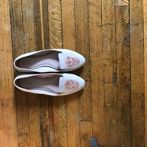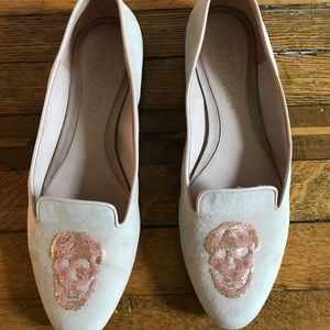 Alexander McQueen women’s ice pink suede sequined skull loafers