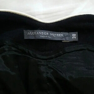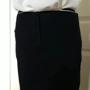 Alexander McQueen Black Pencil Skirt with cream piping waist detail. Lined