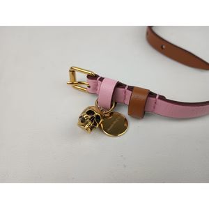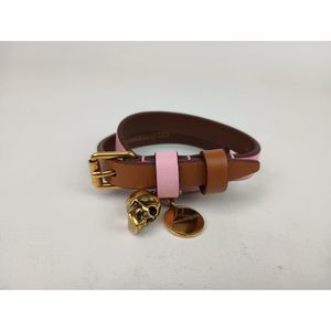 Alexander McQueen Pink Brown Leather Double Wrap Bracelet Skull Charms
