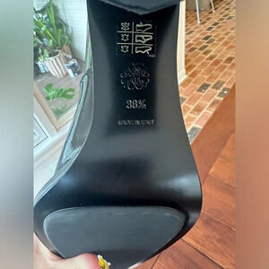 Upper: leather. Lining: leather. Sole: leather insole, leather and rubber sole. Toe shape: pointed toe. Made in Italy. Includes: shoe box, dust bag. Designer color name: Black/Black/Silver. Closure: zipped back.