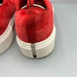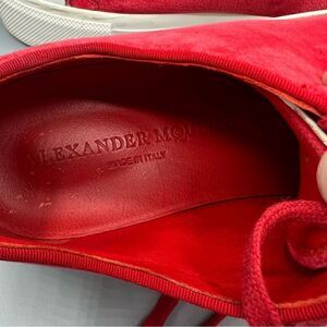 Alexander McQueen Red Velvet Platform Lace Up Low Cut Sneakers