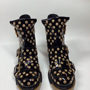 Elevate your footwear collection with these iconic Alexander McQueen Runway Black Leather Ankle Boots. Crafted from high-quality black leather, these boots feature: