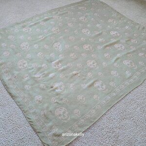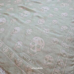 Alexander McQueen Silk Chiffon Classic Skull Scarf Sage Green