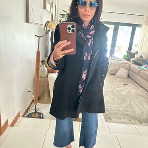 Needs no introduction. 💯 silk. Navy and pink. Adds a pop to any outfit. 114 x 97 cm (approx). Styles a million ways. GUC. See photos for minor snags.