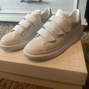 Adjustable hook-and-loop straps bring a retro vibe to a signature leather sneaker set on the line's iconic flared sole with leopard-debossed tread.