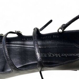 Alexander McQueen Strappy MaryJane Black Leather Caged Ballet Flat sz EU 36.5