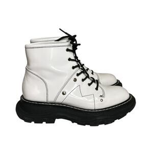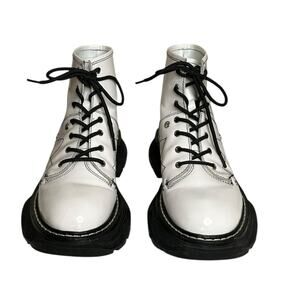 Alexander McQueen Tread Slick Lace Up Boot Combat Stitching White Black 38 8