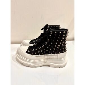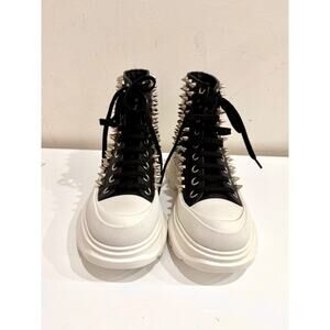 With a lace-up front, chunky platform tread, and signature McQueen detailing, they merge luxury craftsmanship with bold urban style, perfect for elevating casual and streetwear looks.